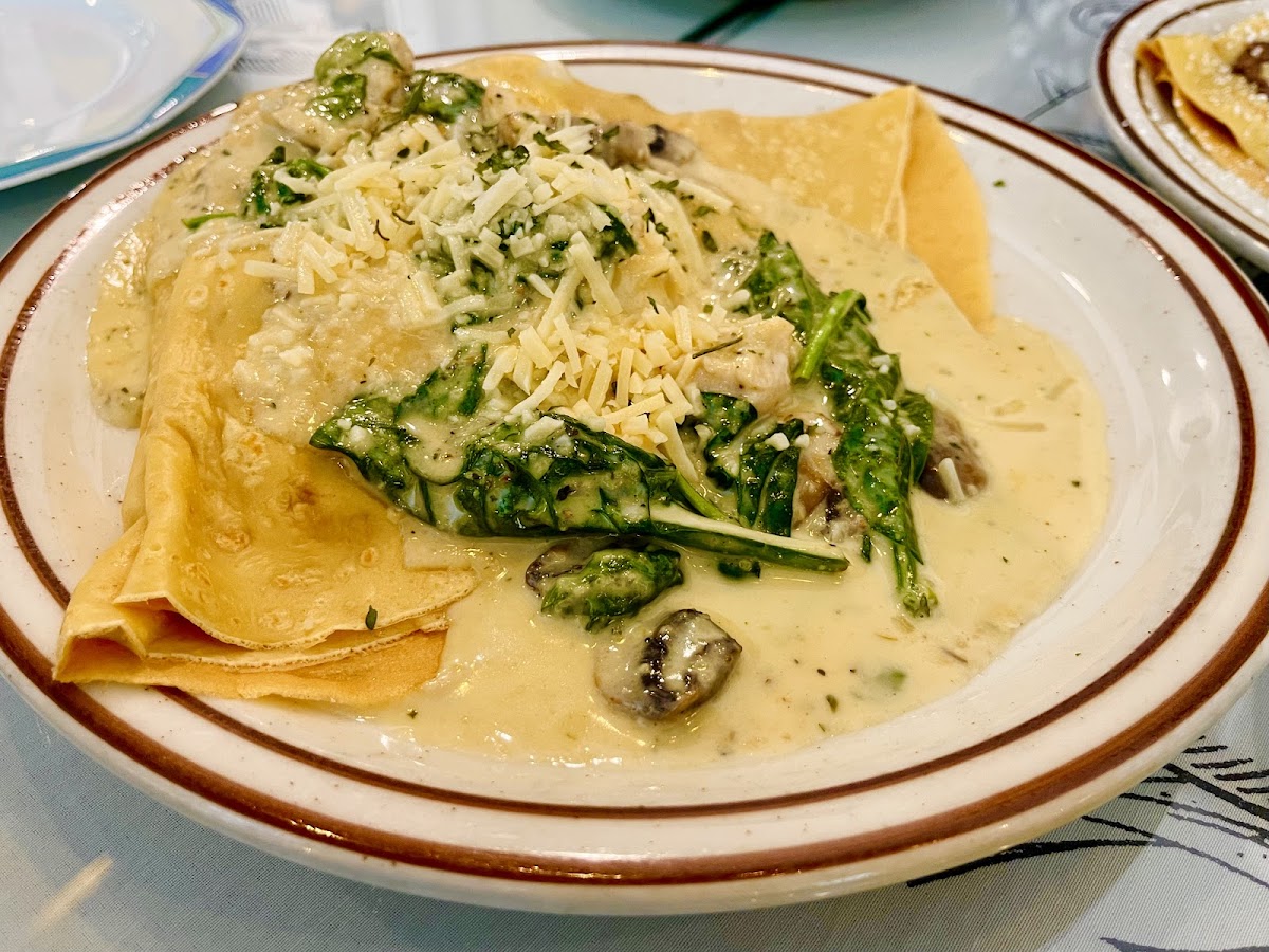 This is a small restaurant specialized in crepes. They do have options for sandwiches and omelette as well. We ordered few varieties and all of them were very good. One of us ordered omelette and it was very good and flavorful. Small place with few tables for 2 and very cozy. Lady at the counter was very friendly and nice