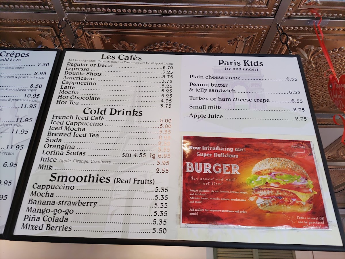 For those looking for something lighter, Crêpes De Paris also offers an array of coffees and teas to complement your meal. Consider a sweet cappuccino or a traditional café Americano as your perfect drink pairing. Visitors have particularly appreciated the iced coffee options, ensuring that there's something for everyone, regardless of the time of day.